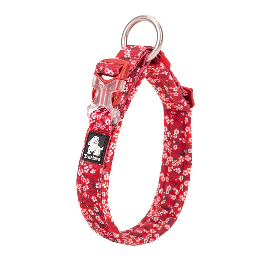 Çiçek Desenli, Neoprene Süngerli Kırmızı Boyun Tasması