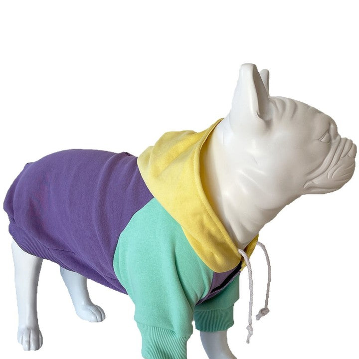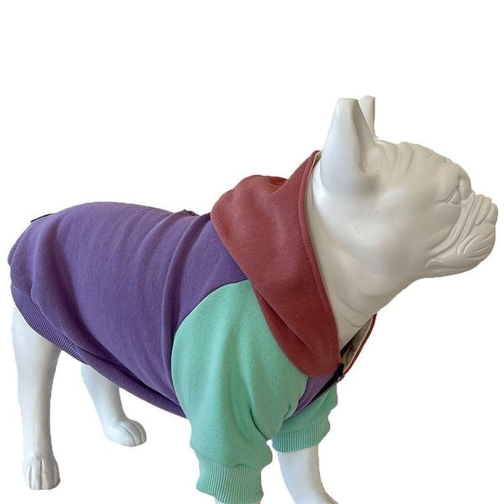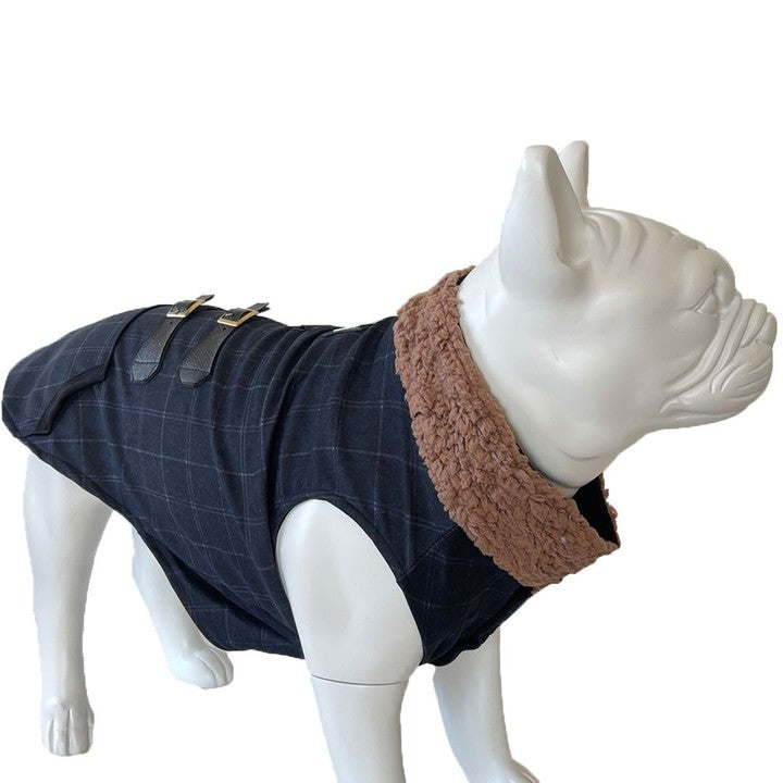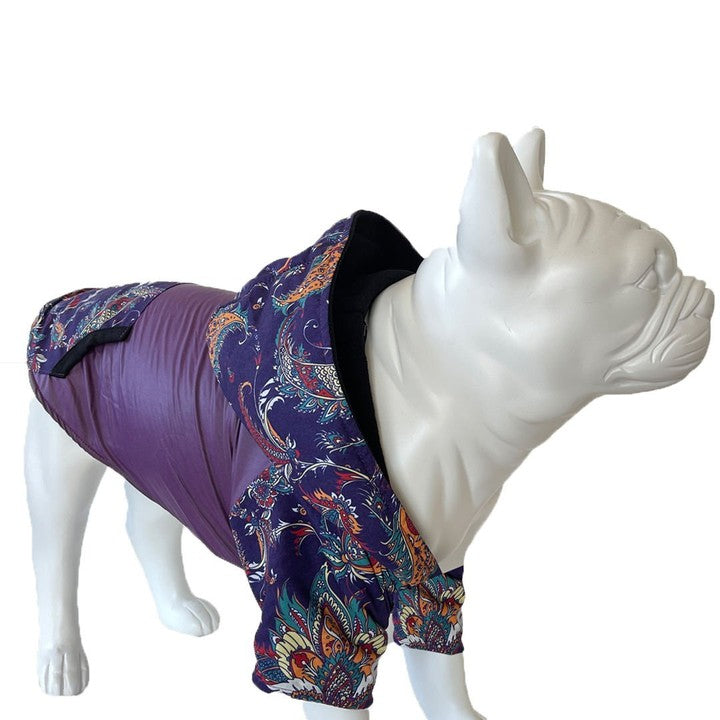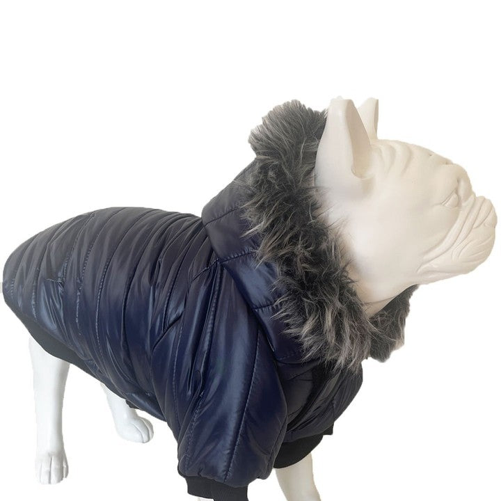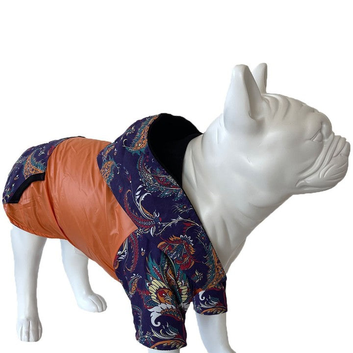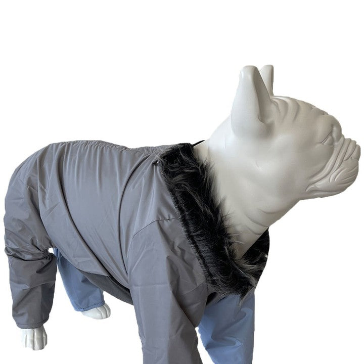 Su Geçirmez, Boynu Kürklü Gri-Mavi Patchwork Köpek Kıyafeti