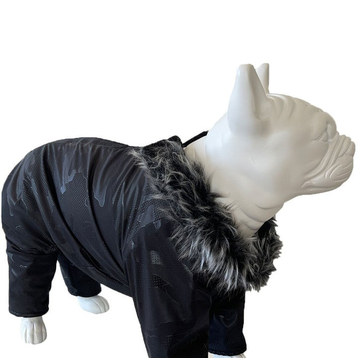 Su Geçirmez, Boynu Kürklü Siyah Kamuflajlı Köpek Kıyafeti