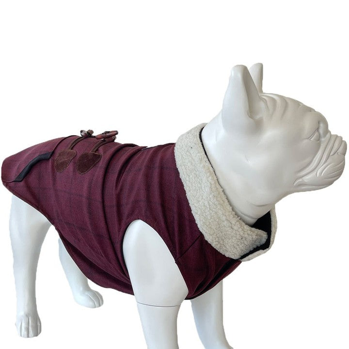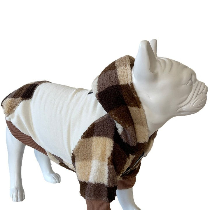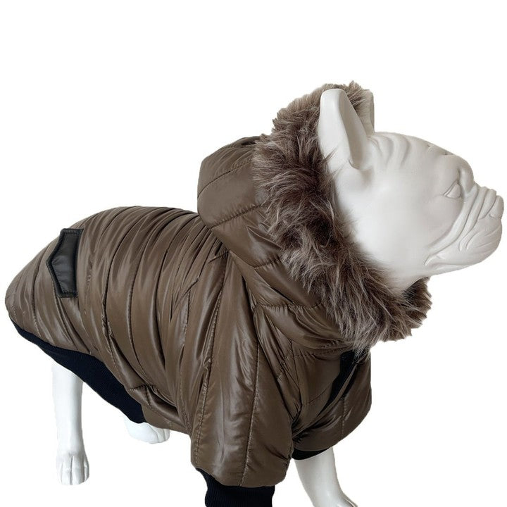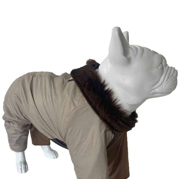 Su Geçirmez, Boynu Kürklü Kahverengi Patchwork Köpek Kıyafeti