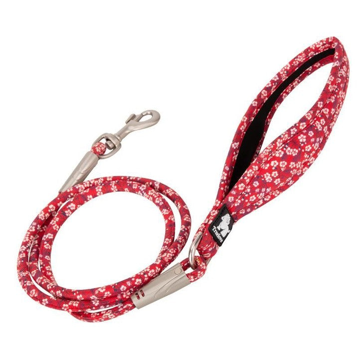 Çiçek Desenli Kırmızı Halat Tasma Kayışı