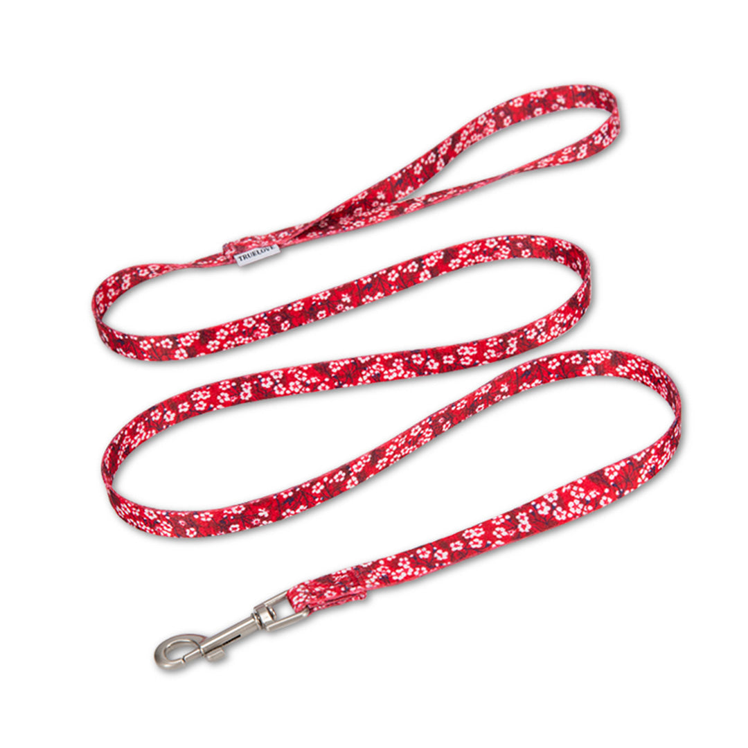Çiçek Desenli Kırmızı Kedi-Köpek Tasma Kayışı