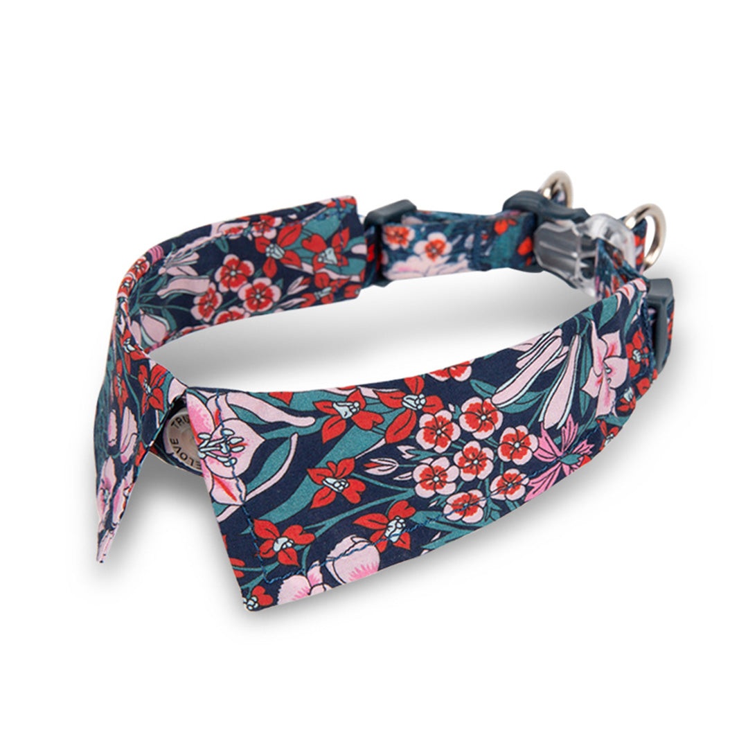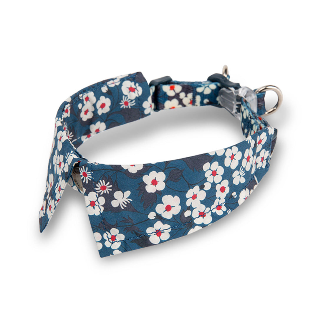 Çiçek Desenli Mavi Kedi-Köpek Boyun Tasması