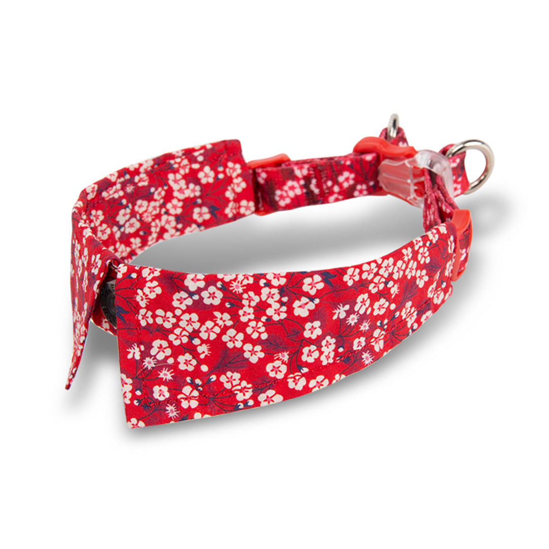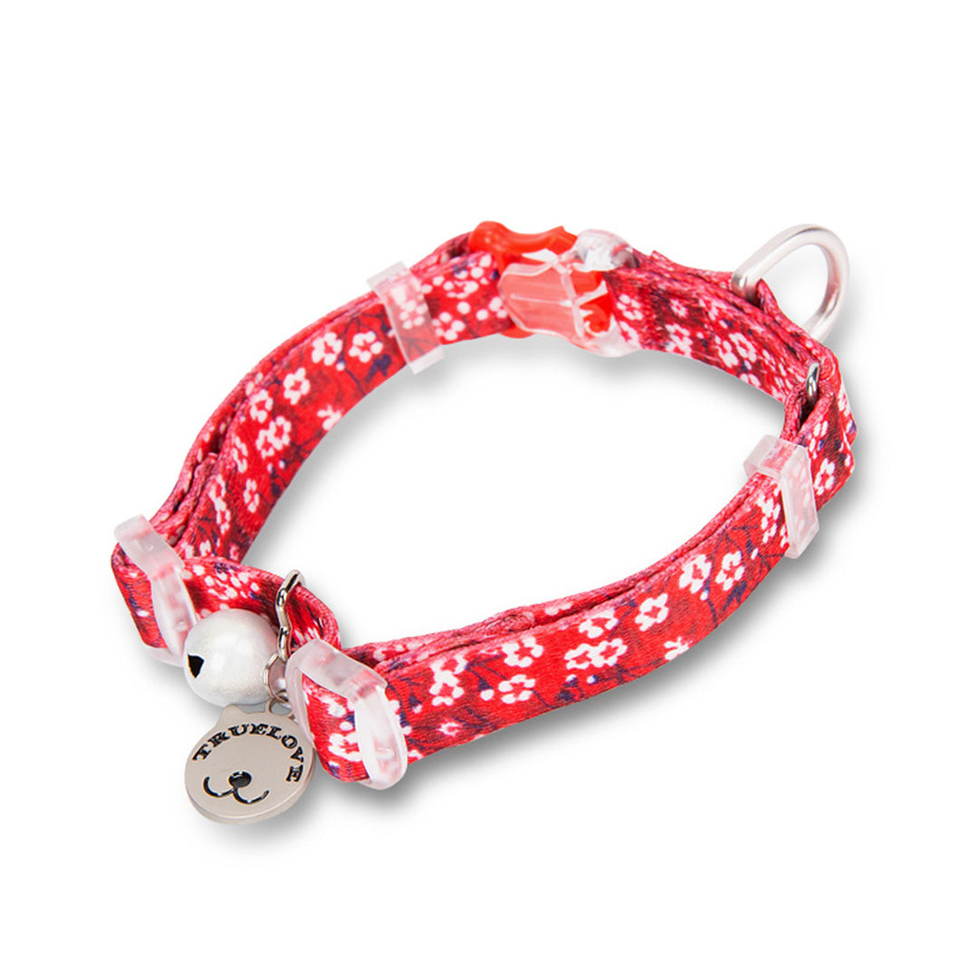 Çiçek Desenli Kırmızı Kedi-Köpek Boyun Tasması