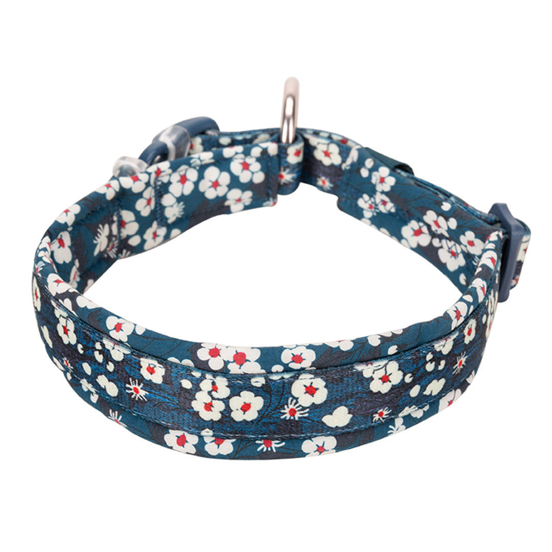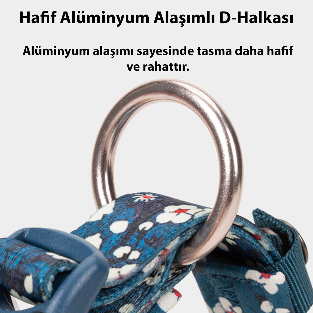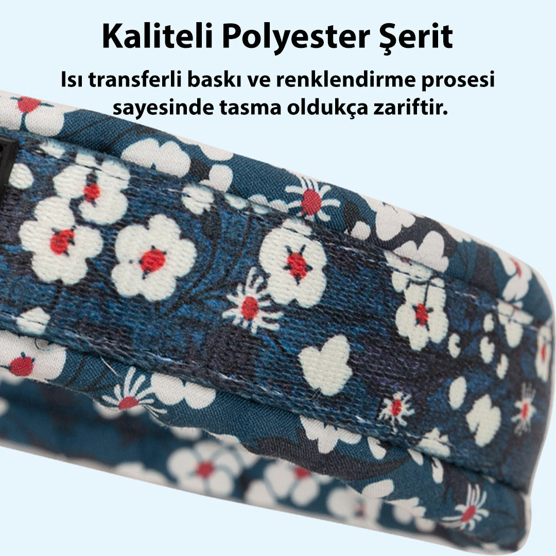 Çiçek Desenli, Neoprene Süngerli Mavi Boyun Tasması