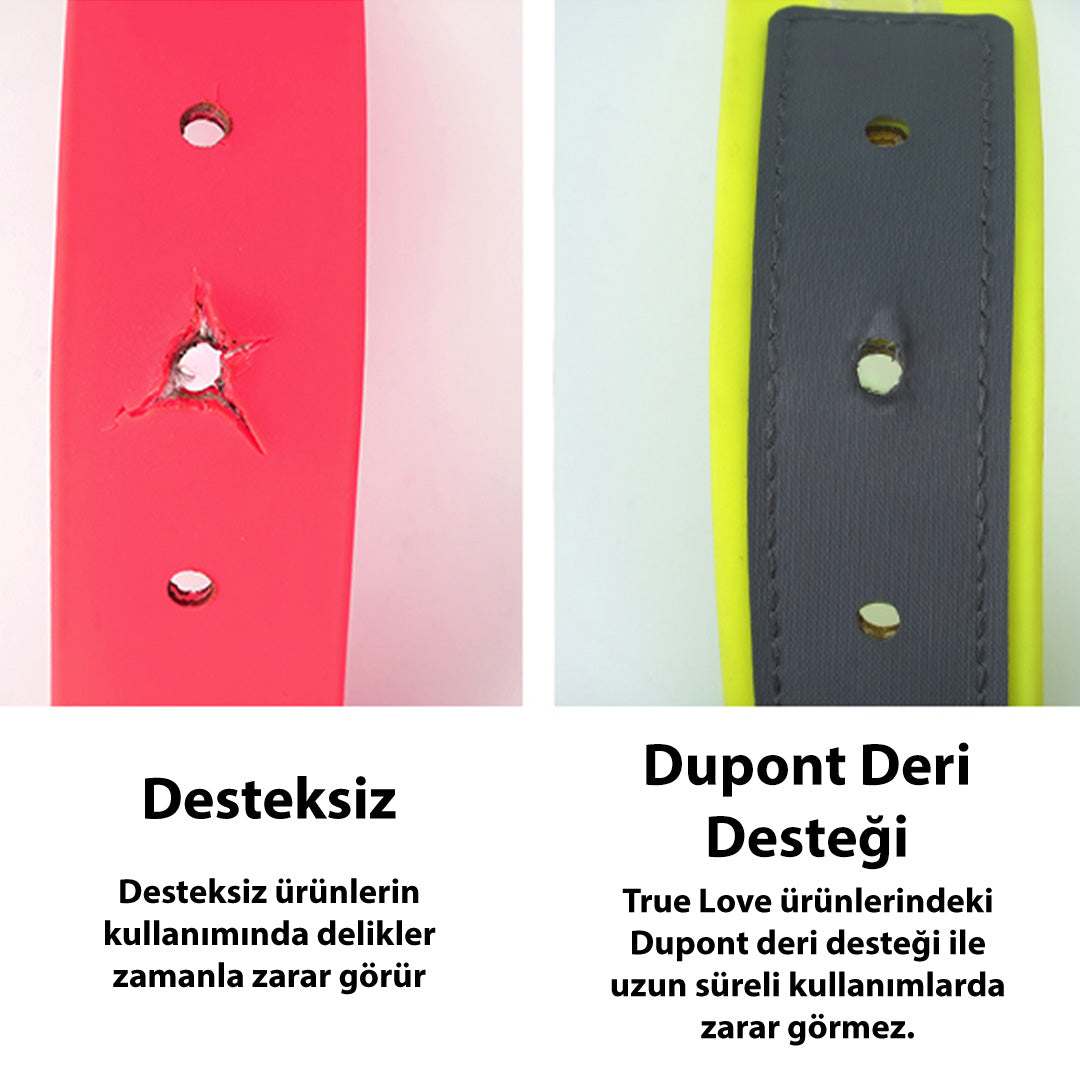 Dupont deri ile güçlendirilen tasma oldukça dayanıklıdır.