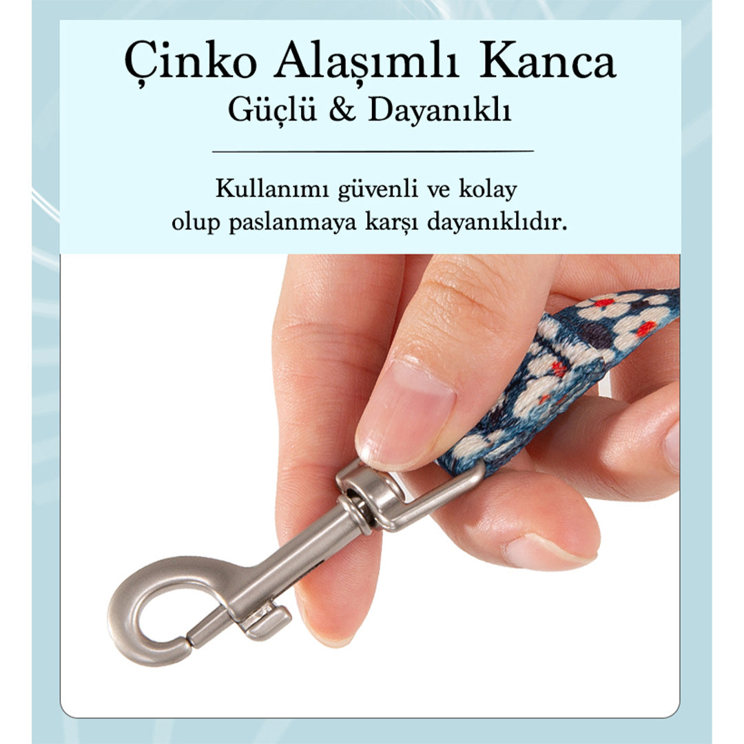Renkli Çiçek Desenli Mavi Kedi-Köpek Tasma Kayışı