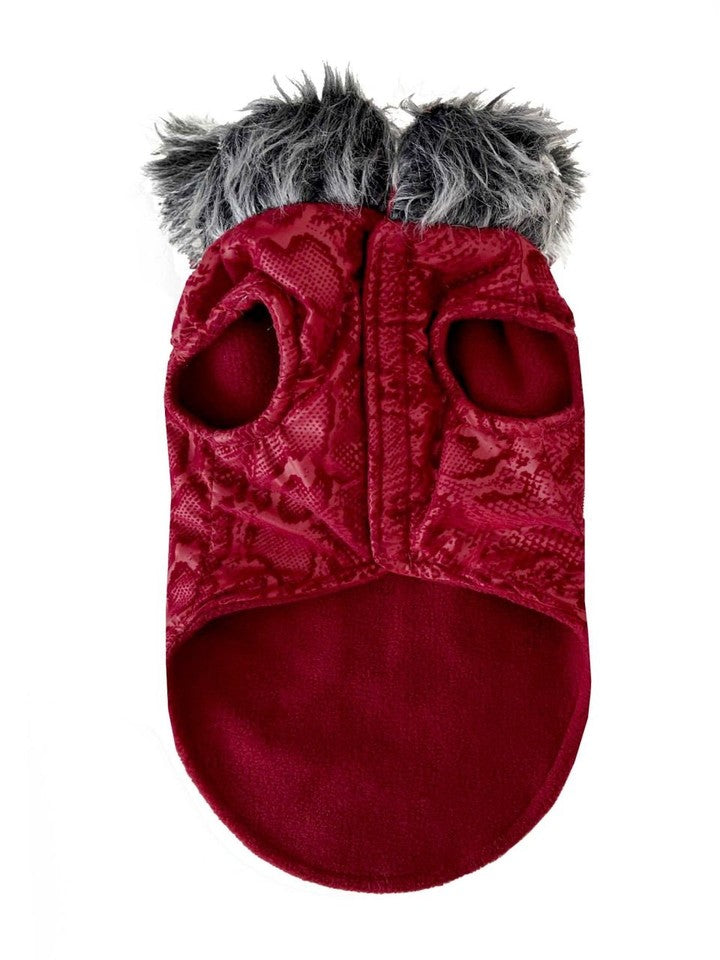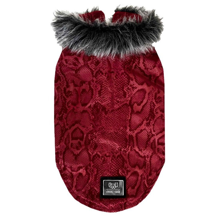 Yılan Desenli Su Geçirmez Bordo Köpek Kıyafeti